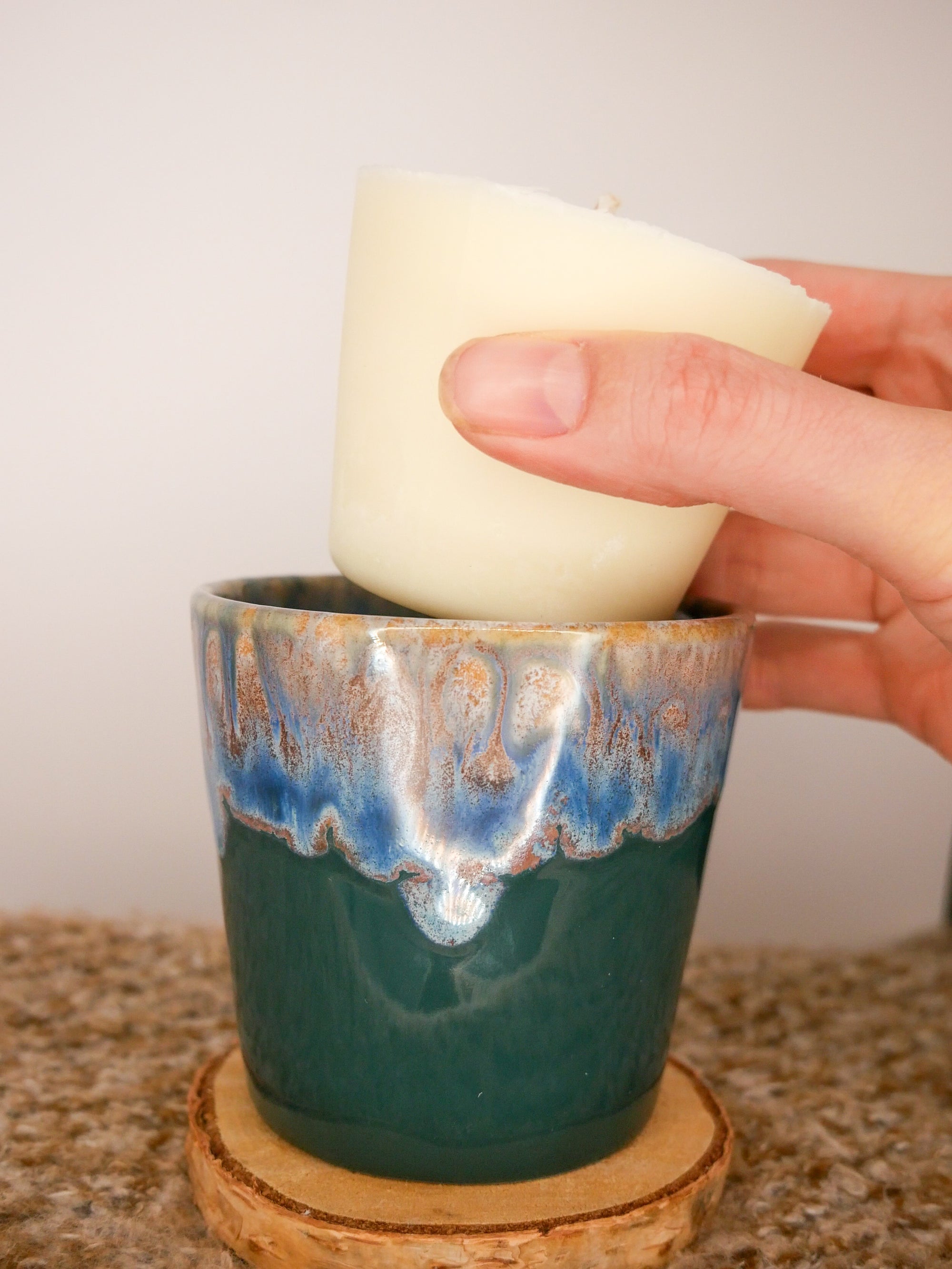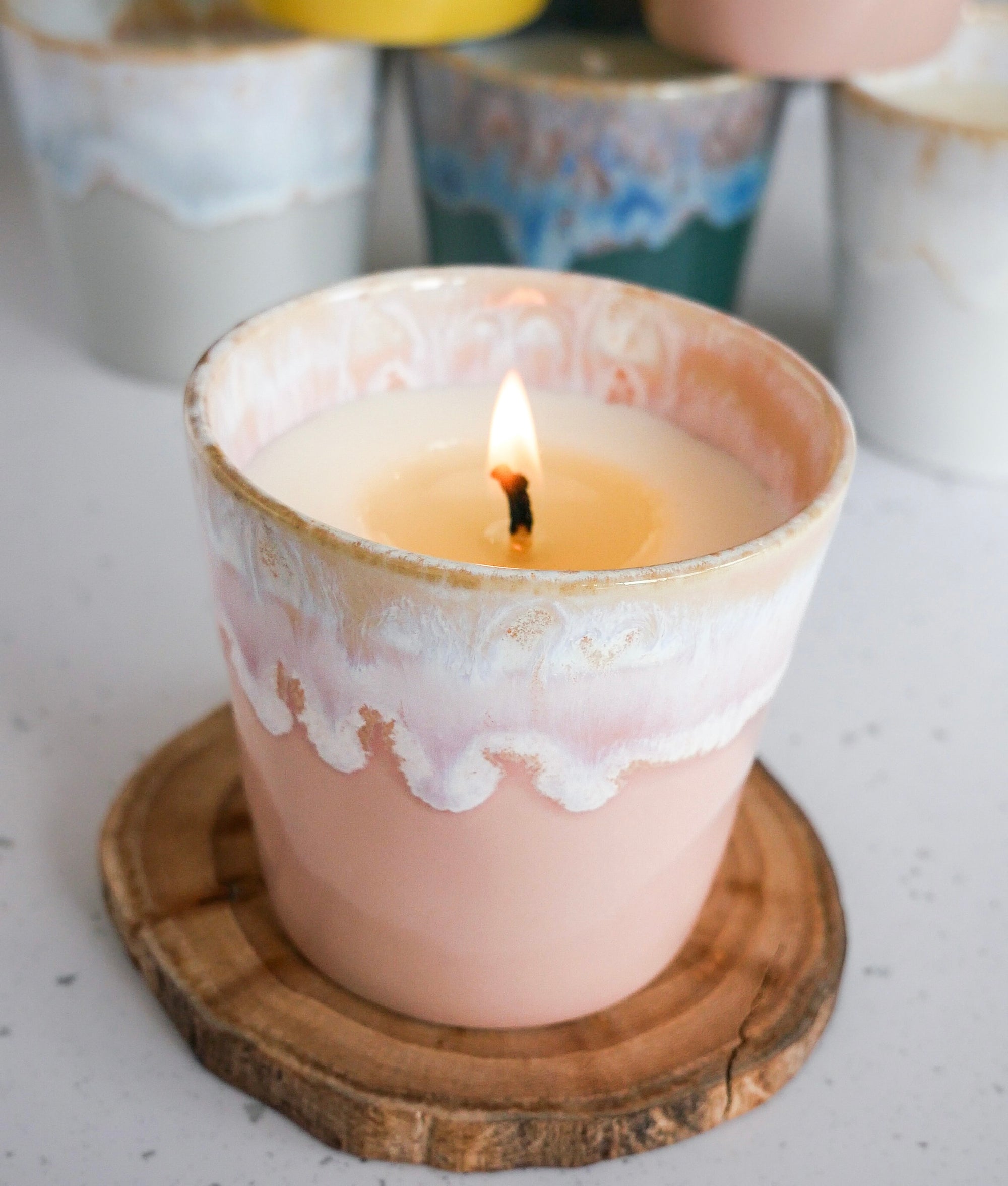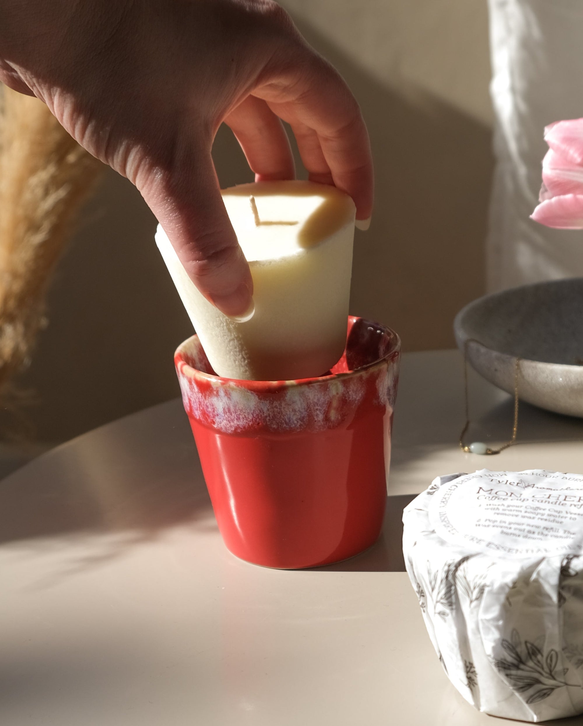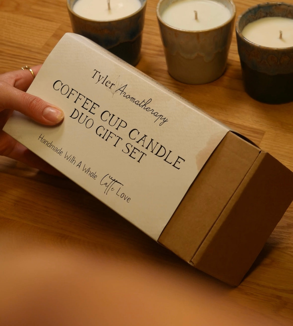 Picture this: you're sipping your favourite coffee from a finely crafted coffee tumbler that once emanated a delightful aroma, filling the room with holiday cheer. It's a harmonious blend of your two loves, coffee and scented candles. At Tyler Aromatherapy, we've transformed this vision into a reality with our Coffee Cup Candle Collection. These coffee cup candles are more than just fragrant decorations; they are a sensory journey that goes beyond the visual and olfactory, adding an extra layer of delight to your coffee-drinking experience. ou don't have to part with the beautiful stoneware coffee tumbler. Instead, you can repurpose it to enjoy your favorite coffee or beverage.